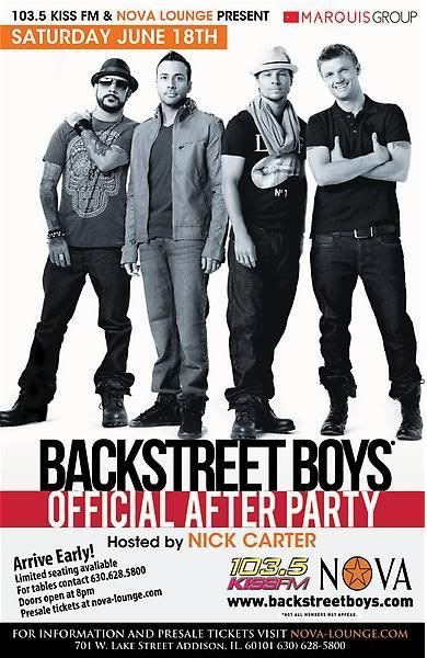 Nick esta madrugada pasada anuncio via twitter que esta noche al terminar el show que tienen hoy tambien en Chicago ira a Nova Lounge una discoteca que se encuentra en Addison donde dara un afterparty, por si eres de alli oas asistido a Chicago para ver el concierto de NKOTBSB y despues quieres ir a la afterparty, la informacion que puso Nick en sus tweets y a demas el cartel del afterparty