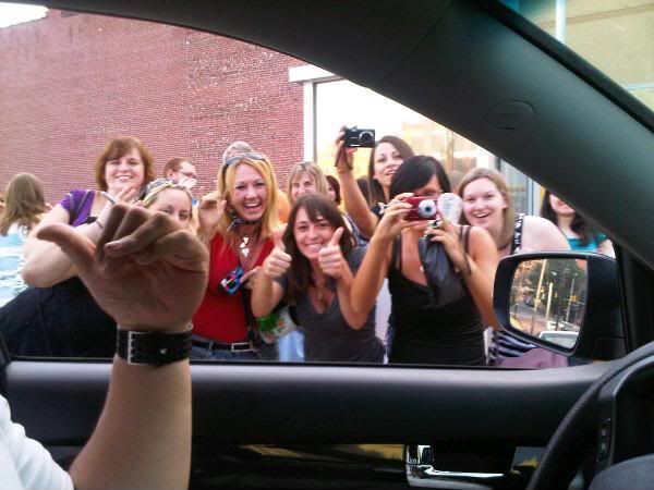 - Esto aqui esta loco. Detras de la puerta, fuera del backstage de las fans.... Los queremos!... Pio Pio