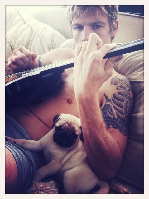 Hace un rato a aparecido una nueva foto de Nick tocando la guitarra y su perrito al lado , anunciamos aque la foto es de infarto pues Nick esta sin camiseta y pantalones cortos o boxers no se ve bien, a continuacion la foto