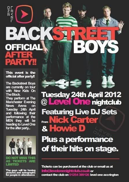 Hace unos dias os poniamos un cartel de la afterparty en la que estaran Howie y Nick tras el concierto en Dublin, pues bien hoy aparecido un nuevo cartel que podeis ver a continuacion