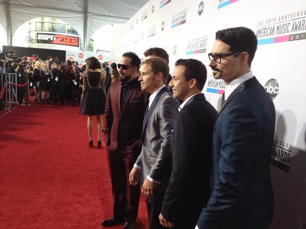 Antes de comenzar los AMA's nuestros chicos se encontraron en u hotel donde se acabaron de arreglar y estuvieron un rato alli esperando para salir, cada uno de los chicos antes de salir publicaba sus fotos y sus tweets aunque algunos no llevaban tweets y a continuacion los tenéis todos