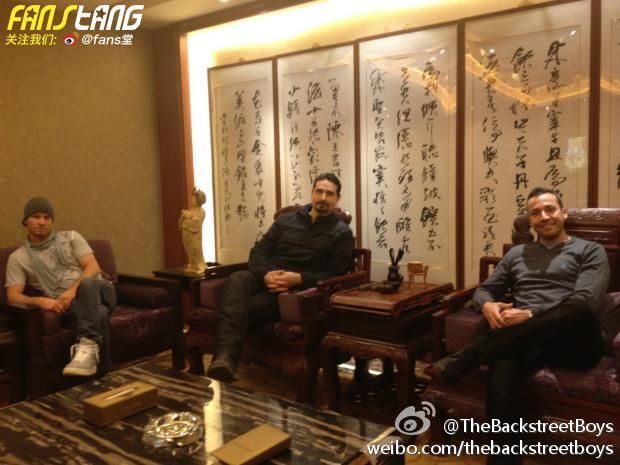 Hoy mismo salia una nueva foto de nuestros BSB en china, en esta foto están Howie, Kevin y Brian, no sabemos mucho mas de ella, no sabemos si es una foto en la que los chicos están aprovechando para descansar o están atendiendo a prensa, a continuación tenéis la foto