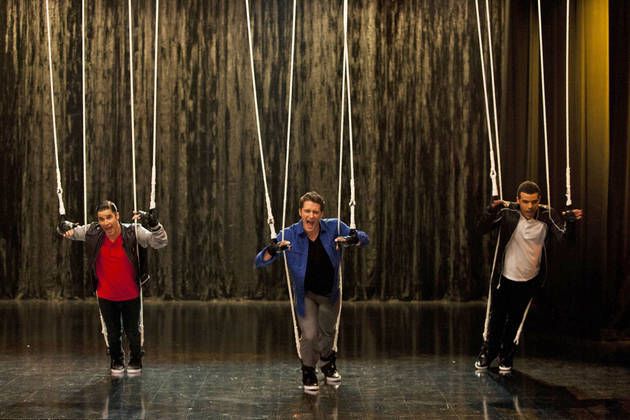 Will (y sus coristas, Jake y Blaine) cantan "Bye Bye Bye", e incluso había las cuerdas de marionetas unidos a ellos como los chicos NSYNC hicieron en su video musical, y Finn cantó (respaldado por los chicos de la banda Ryder y Sam) "I Want It That Way "de Backstreet Boys. Dos de las mejores canciones de las dos mejores boy band de todos los tiempos.
