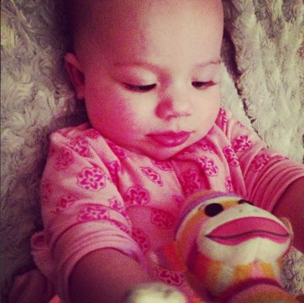 Esta noche pasada Rochelle subía una nueva foto de Ava tumbada y jugando con uno de los peluches que es un monito!!! en el mensaje que acompaña es como si Ava saludara al monito, la foto es subida en la cuenta de Ava, a continuación la imagen