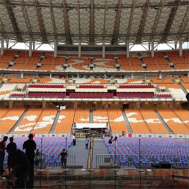 Esta mañana temprano en España, ya casi el mediodía en China, Nick subía una nueva foto a twittear donde en ella vemos los 5 micros preparados para el Soundcheck y un estado enorme, incluso Nick comenta que van a actuar para 30.000 personas!!!! En la foto si la miráis bien vereis a Brian y Howie, a continuacion la foto y el tweet