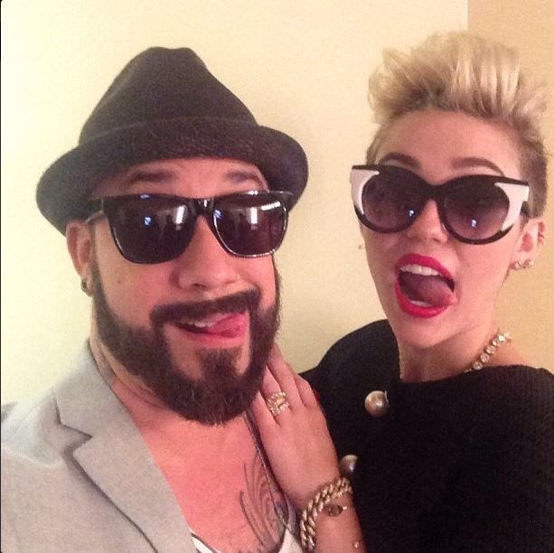 Después de la actuación de BSB en Live With Kelly and Michael nuestro AJ en camerinos se a encontrado con Miley Cyrus y se a echo esta foto que a compartido en Instagram, a continuacion la foto y el mensaje