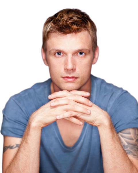 En las fotos de la portada del libro de Nick, aparece una foto de el con las manos entrelazadas, camiseta azul y mirando fijamente a la cámara, pues bien, ahora tenemos esta foto en alta calidad gracias a nuestra amiga Karen de backstreetboys.cl, a continuacion la foto