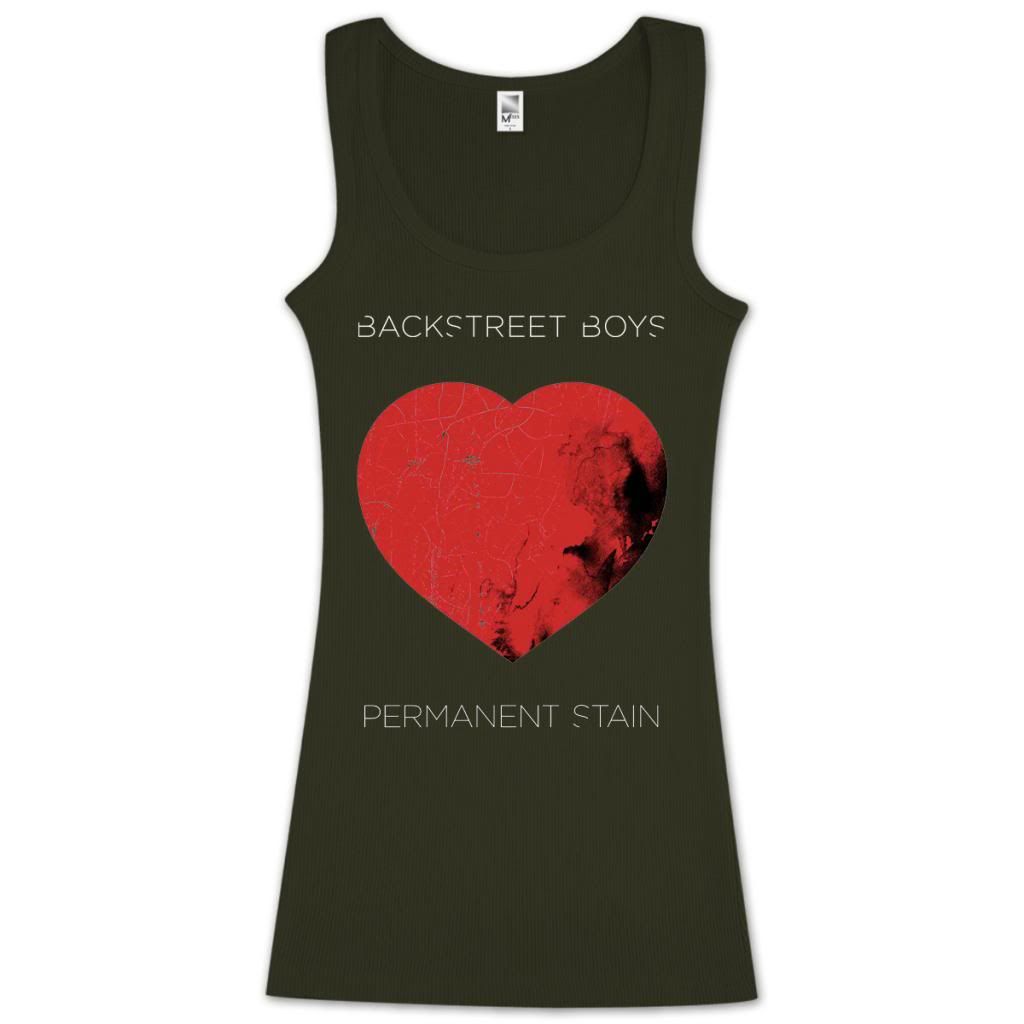 Hoy mismo hemos descubierto que BSB a puesto un nuevo producto de Merchandising oficial en la web de Bravadusa que es la que lleva este tema, lo que han puesto a la venta es una camiseta de tirantes con el corazón de Permanent Stain y el titulo de la canción a demás de "Backstreet Boys", a continuacion tenéis la imagen y después mas información
