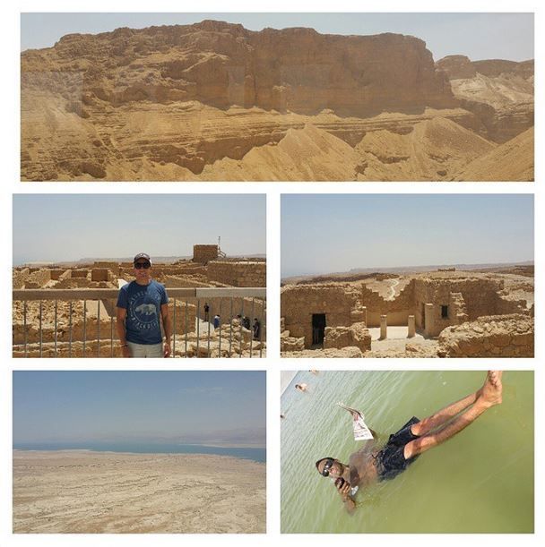 - Segundo día de turismo incluye ir a una antigua fortaleza judía en la cima de una montaña llamada Massada. Seguido por ir hasta el Mar Muerto, que todos nos tomó un baño de barro y flotamos causa de la alta concentración de sal. Incluso me gustaba leer un periódico tabloide local con una copa de vino por supuesto ....;)